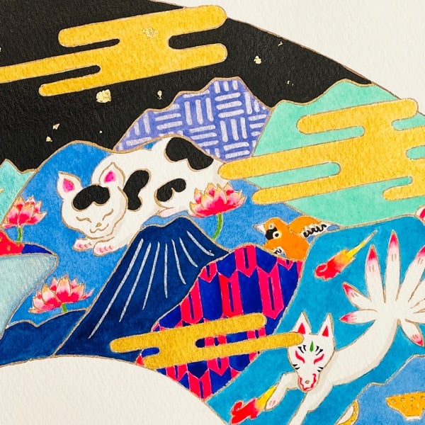 扇子用の原画が完成し、デザイン提出をしましたが、見事に一発OKをいただきました。
