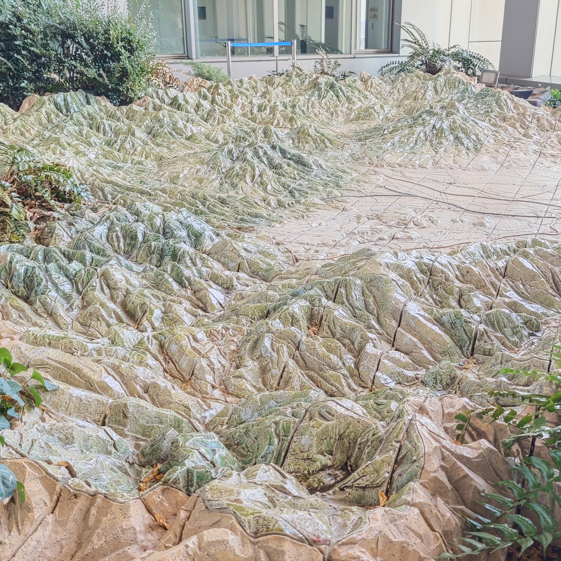 群馬県全体を1万2千分の1スケールで再現した立体模型は、陶器(有田焼の陶片844枚使用)で作られていて、県の地形や山岳、主要市町村の位置関係を立体的に把握できるユニークかつ貴重な展示物です。