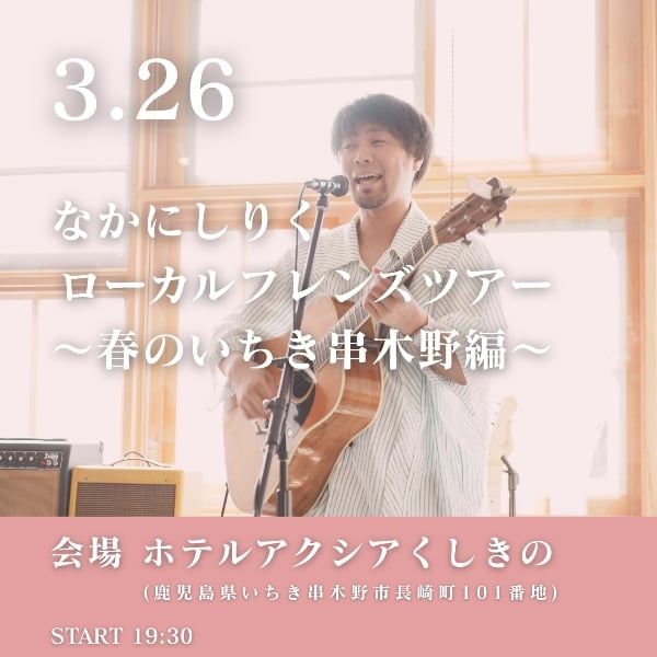 3.26(木) なかにしりくローカルフレンズツアー ~春のいちき串木野編~ 会場 ホテルアクシアくしきの (鹿児島県いちき串木野市長崎町101番地) START