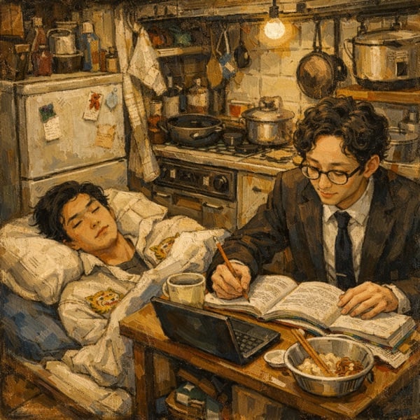 YouTube世代ギャプ/ラブ川とは何者なのか問題/ワタナベお笑いNo.1決定戦 予選出場決定/Aブロック2番手の恐怖と期待/才能を見抜かれかけたオト/12時10分に帰宅できる夢の昼下がり/キッチンで寝る男・オトの生活/1K3人の限界生活スタイル/キッチンに勉強机がある理由/ネタは書けないが青春はある/ “しこり部屋”という新しいルール/知らない芸人と住むという狂気の提案/顔がいいコンビとしての自覚/あおきに大量の〇〇を送る魅惑の女性/