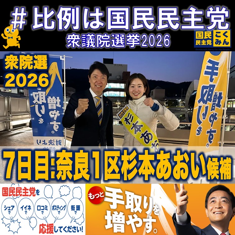 比例は国民民主党 杉本あおい奈良1区 足立康史 衆議院選挙 2月3日