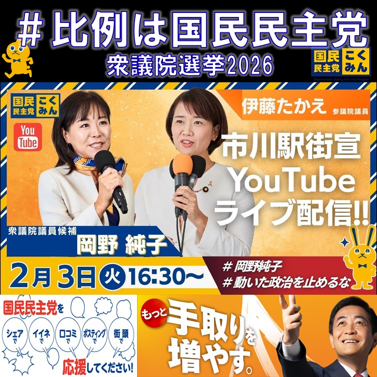 比例は国民民主党 岡野純子千葉5区 伊藤孝恵議員 衆議院選挙 2月4日