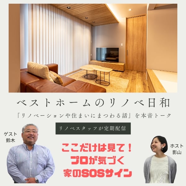 「床がふわふわする」「壁紙が浮いてきた」「なんとなくカビっぽいにおいがする」 それ、実は家からのSOSサインかもしれません。 今回の「ベストホームのリノベ日和」では、 工務・耐震診断士の鈴木さんをゲストに迎え、 プロだから気づく“見逃してはいけない劣化のサイン”についてお話しします。 普段は見えない床下や小屋裏のこと、 「まだ大丈夫」と思いがちなサインの本当の意味を、 現場目線でわかりやすくお伝えします。 これからリノベーションを考えている方も、 今のお住まいが少し気になっている方も、ぜひお聴きください。 #家のSOS #家の劣化 #リノベーション #劣化のサイン #岡山