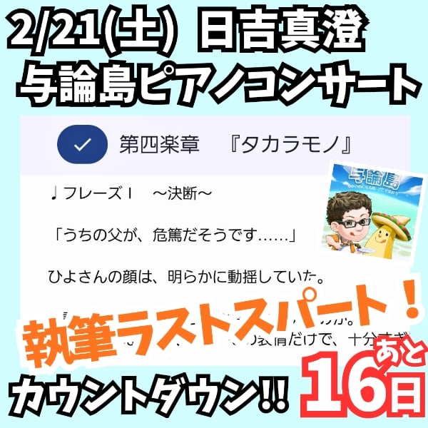 与論島ピアノコンサートまで、あと16日。