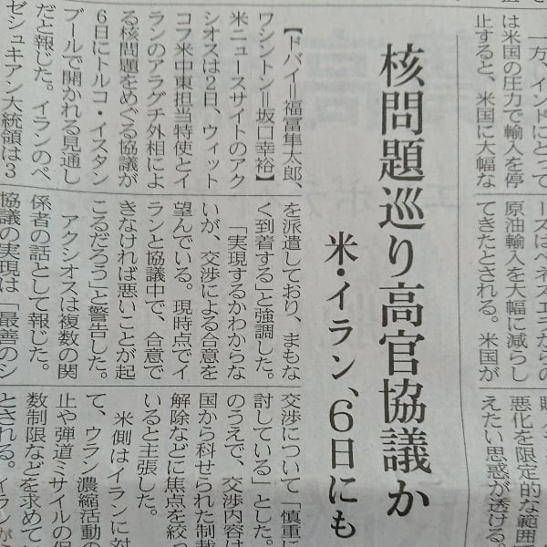 核問題巡り高官協議か、米・イラン【2026,2,4日経13面】