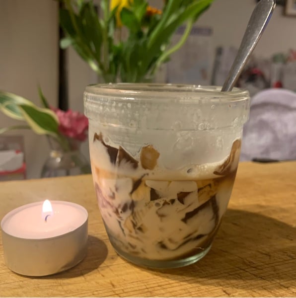 今日もがんばったなとキッチンにふらり。 昨日作ったコーヒーゼリーを食べたくなった。(不摂生) リラックスしていたし、 明日も休みだし、食べちゃおう。 コーヒーゼリーの上には、 ◆ラム酒 ◆メープルシロップ ◆生クリーム を、それぞれタラリとかけていき、クラッシュしていただきます。 「うーーん!美味しい!」 美味しくって、皆さんと今日を振り返ってみました。 #コーヒーゼリー #ラム酒 #夜のおやつ #背徳感 #大人のダンス部 #袖山かおり #世間話