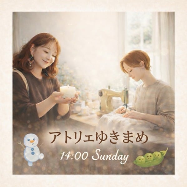 先週スタートした、リネン作家のえだまめさんとのコラボライブ**【アトリエゆきまめ】⛄️🫛 第1回目はなんと……楽しすぎて4時間半**もノンストップでお喋りしてしまいました!笑 お付き合いくださった皆さま、本当にありがとうございました♡ さて、今回は1時間短く出来ました💖 日曜日の昼下がり、キャンドルの灯りやリネンの手触りのように、皆さんの心にそっと寄り添うひとときになったかどうかは 聞いてみてね、 そして、最後まで聞いてくださった方は キーワードをコメントしてね♡ 正解の方には 💖30ポイント 差し上げます💖
