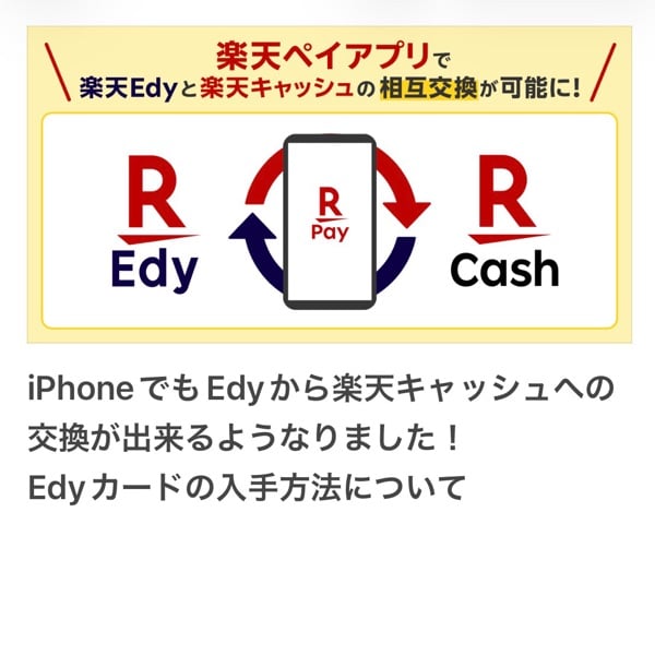 ついにiPhoneでもEdy残高から楽天キャッシュへのチャージが可能になりました
