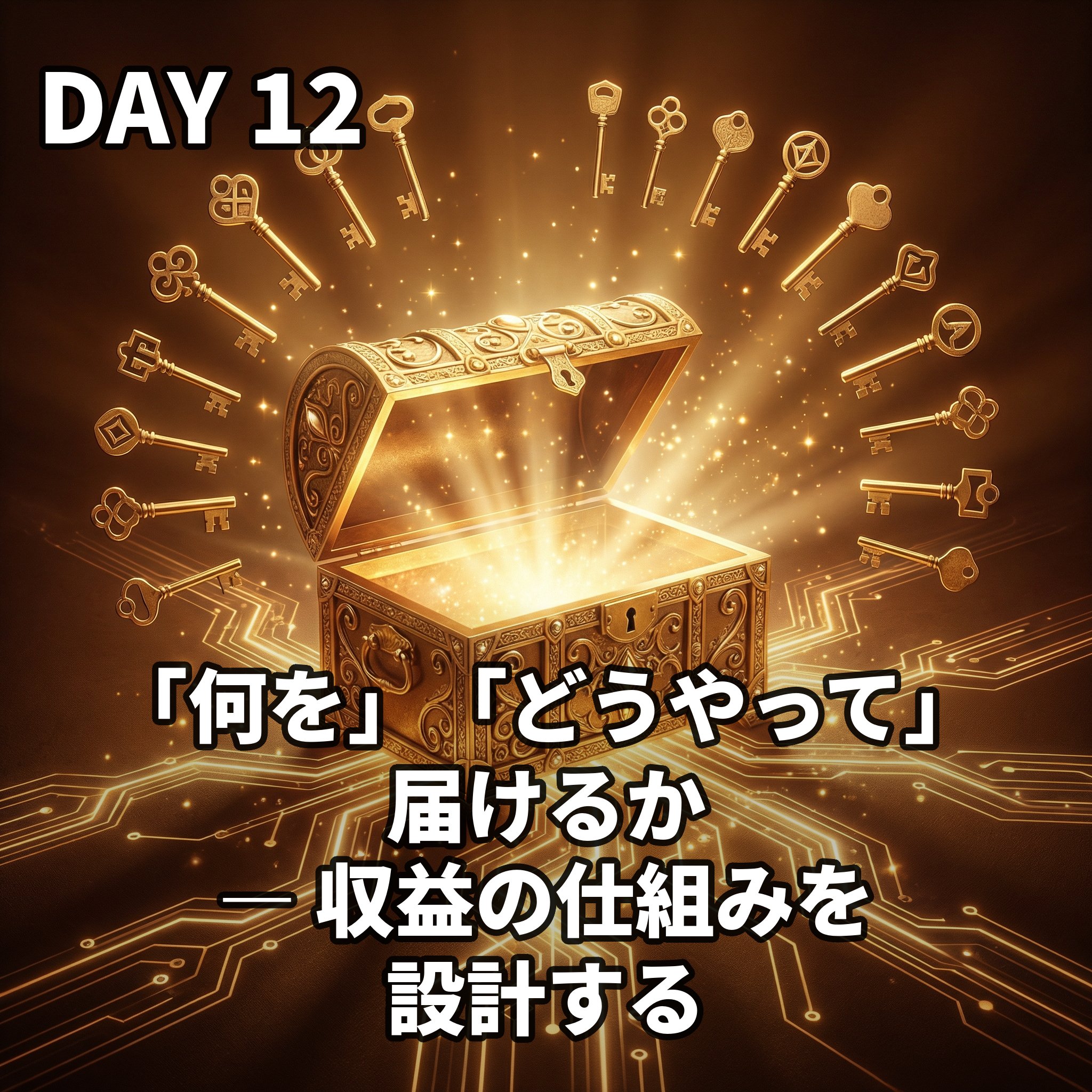 素晴らしい商品も、届ける相手と方法を間違えれば、ただのガラクタになってしまう。あなたの価値を本当に必要としているのは「誰」ですか?その人に「どうやって」届けますか?収益化の心臓部である「誰に、何を、どうやって」を明確にする、ビジネス設計の超基本をお伝えします。