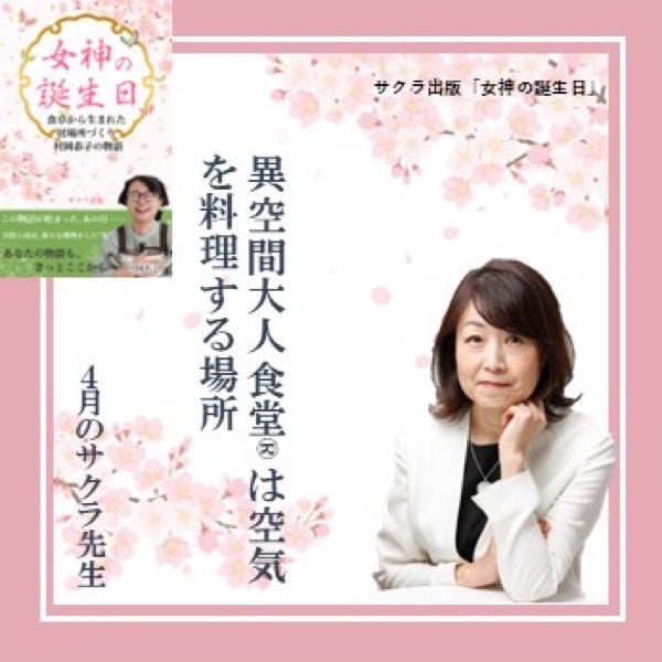 異空間大人食堂® は“空気を料理する場所(2026.2.26配信) 異空間大人食堂® を主宰する村岡恭子さんの新刊が完成しました。 手づくり料理を囲むだけでなく、恭子さんがつくり出す“場の空気”そのものが人をほぐしていく──。 そんな彼女の歩みと、空気ごと温度を変えてしまう不思議な魅力を丁寧に描いた一冊です。 ▶ 続きは音声配信でお聴きください。 ※「女神の誕生日 村岡恭子の物語」 ~2/28無料キャンペーン中 https://www.amazon.co.jp/dp/B0GPMLSFYN プレスリリース https://www.value-press.com/pressrelease/370225 #4月のサクラ先生 #女神の誕生日 #異空間大人食堂 #無料キャンペーン #サクラ出版 #毎日配信