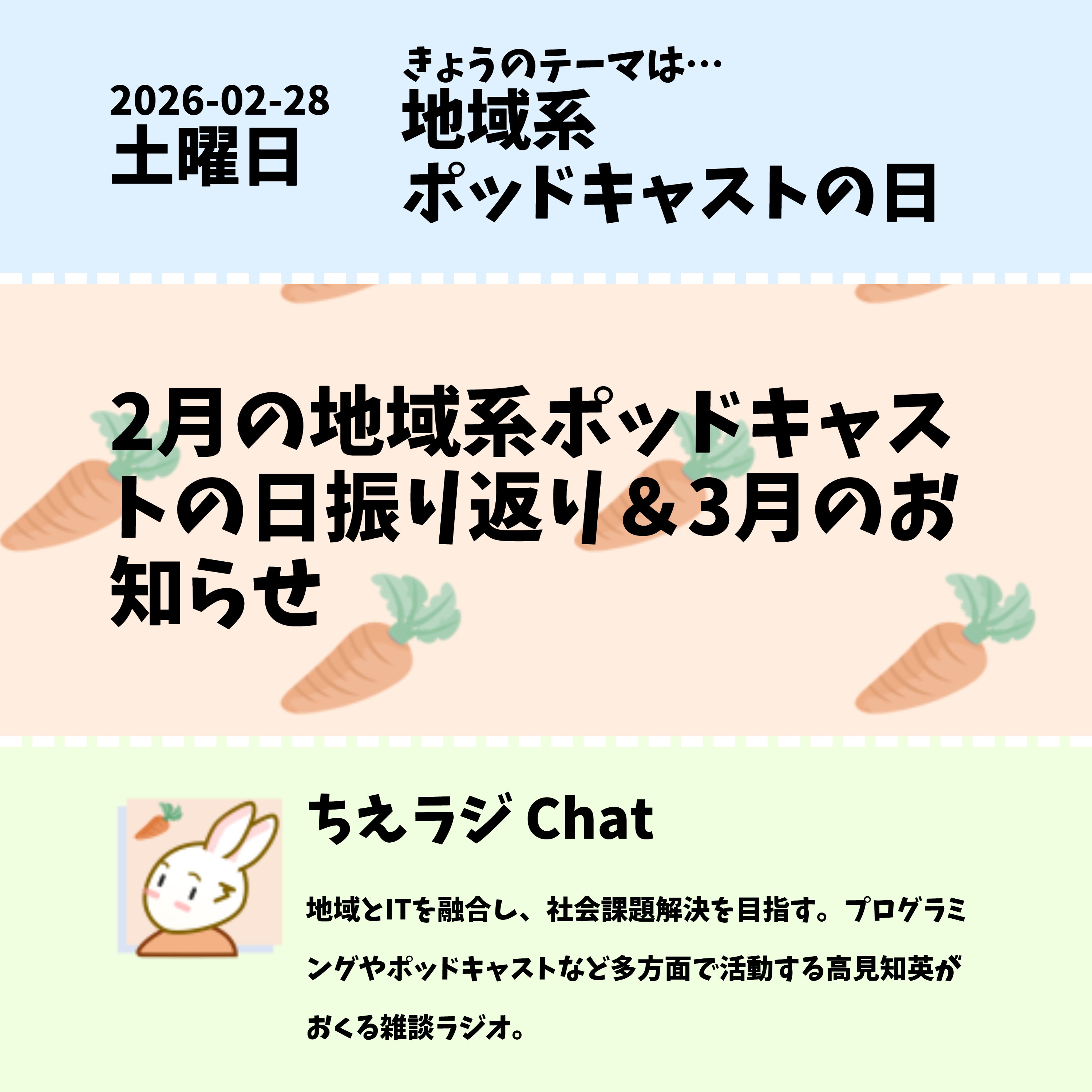 今月の地域系ポッドキャストの日振り返りと3月のお知らせをしました。 #地域系ポッドキャストの日