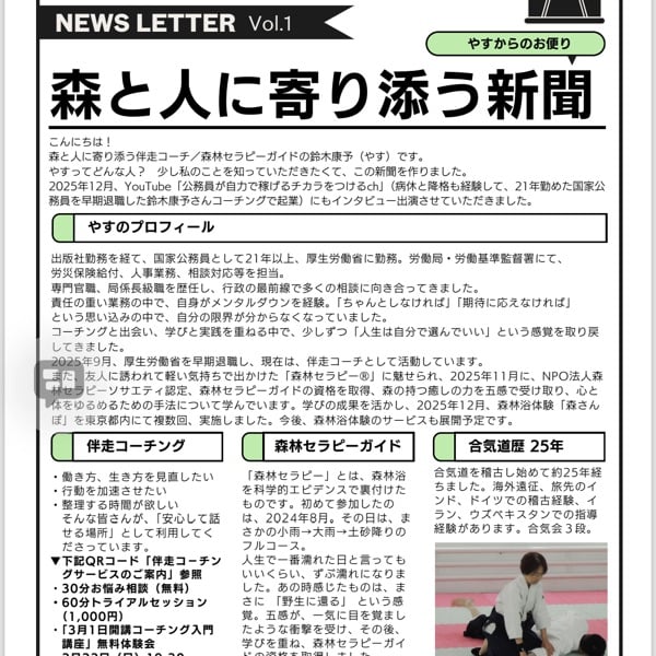 新聞拝見しました✨ やすさんのことがギュッと詰まっていて、素敵ですね🥰 やすさんの合気道のご経験歴の長さに驚きました! スタエフの配信などコツコツと積み上げてこられた凄さを改めて感じました✨