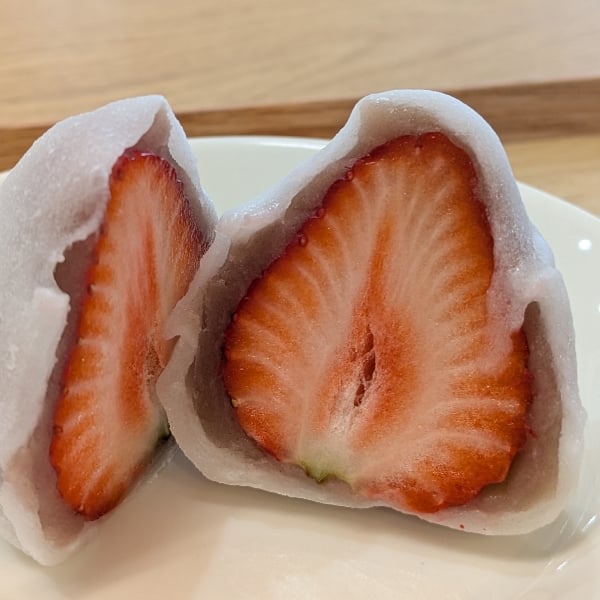 ひろたん、いちご大福〜🥰このあんこの量、ほど良い! 食器、詳しい方多いね、今日も楽しかったです〜