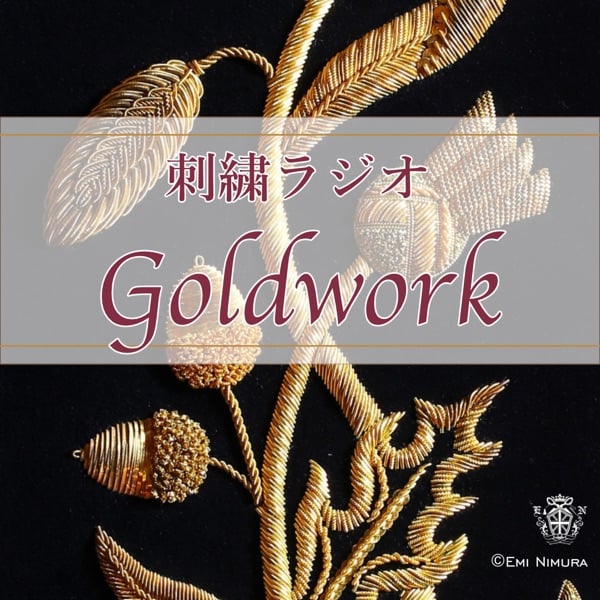 Goldworkは、金属糸を使って刺す刺繍で、王室の衣装や教会装飾などにも用いられてきた、英国刺繍の中でも特に華やかな技法です。