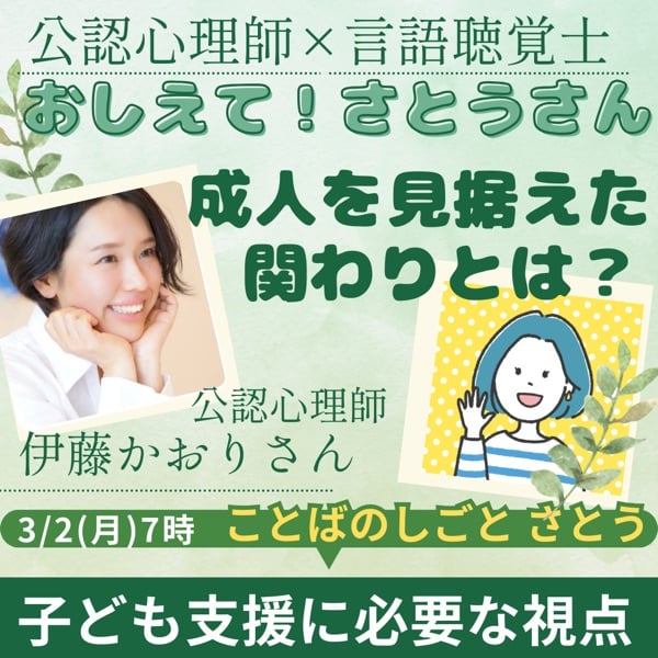今回は「いとかおさん!子ども支援には成人を見据えた視点と関わりが大事だよね?!どう思いますー?」と、さとうに教えて!な回です。