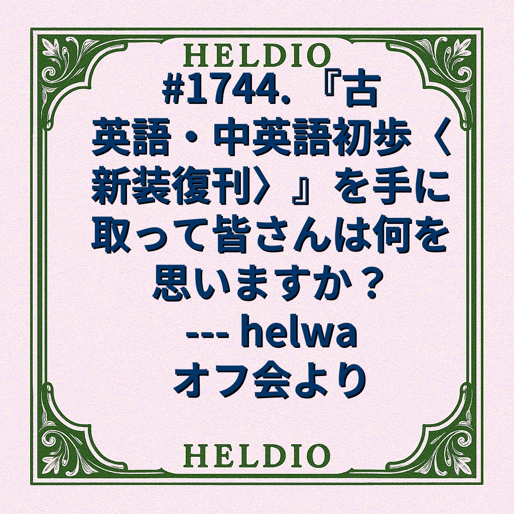 2月末の helwa オフ会で,参加者が手にしていた『古英語・中英語初歩〈新装復刊〉』について語る機会がありました📙