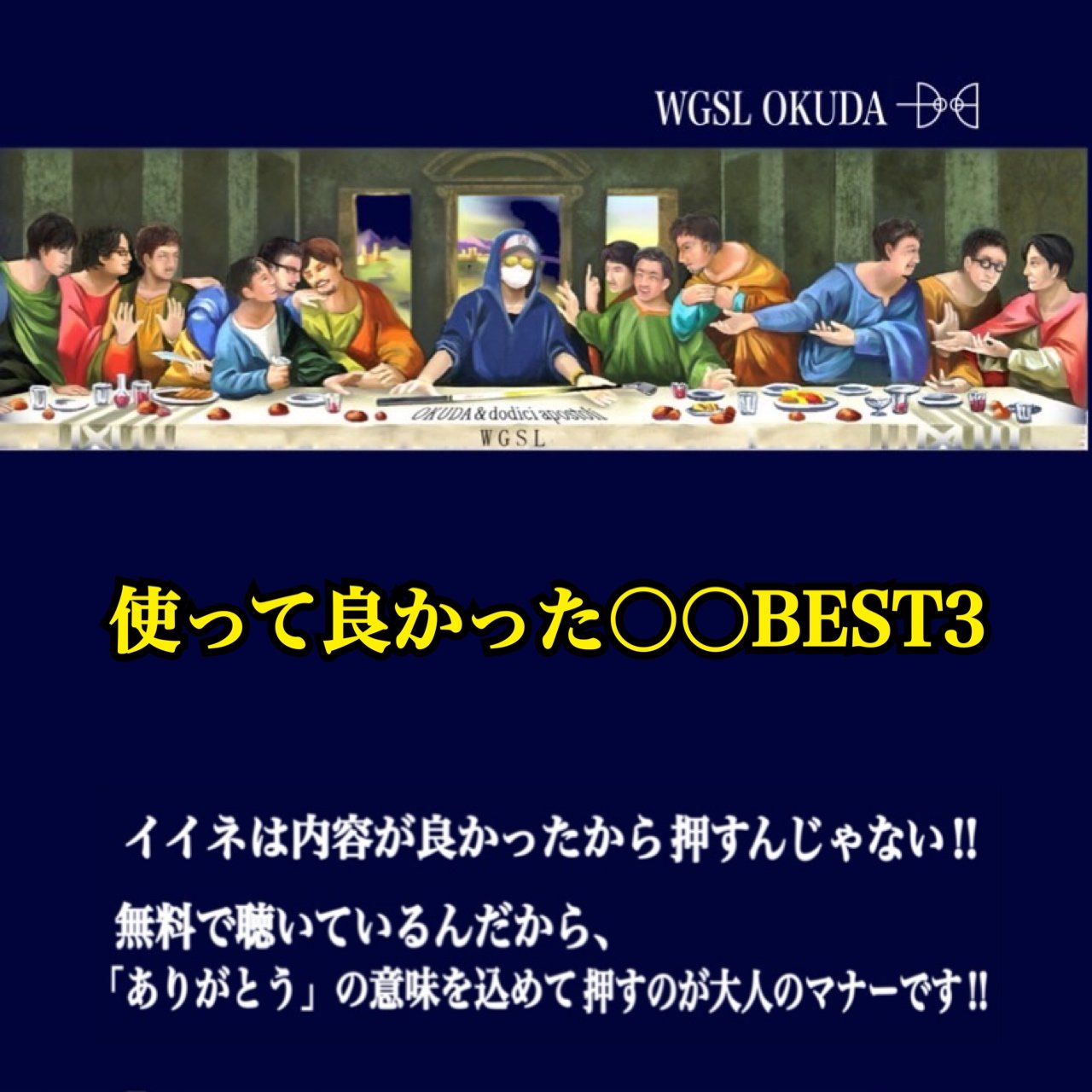 ファンの皆様へ いつも貴重な時間を割いてお聴きくださりありがとうございます。 また、コメント及びイイネにも重ね重ね御礼申し上げます。   今後ともよろしくお願いいたします。   いつもありがとうございます。 感謝してます。   WGSL OKUDA