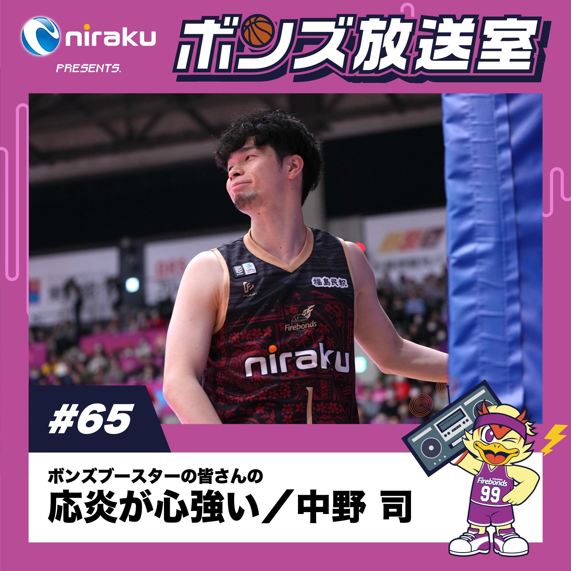 ◤ ニラクPRESENTS. #ボンズ放送室 ◢ 📻#65 ボンズブースターの皆さんの応炎が心強い 👤#中野司 選手 前回の笠井選手に続き、夏ぶりの出演! 愛媛戦でのボンズブースターの応炎は、選手たちにとってとても心強かったと話す中野選手🔥 改めて、ここまでチームを率いるライアンHCについても話してもらいました! #福島ファイヤーボンズ #firebonds #Bリーグ #バスケットボール
