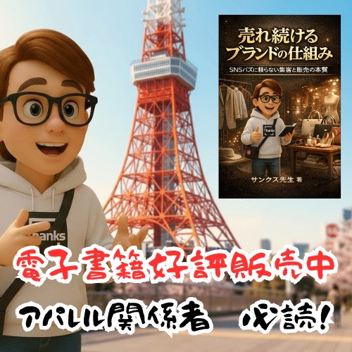 本書『売れ続けるブランドの仕組み 〜SNSバズに頼らない集客と販売の本質〜』は、アパレルブランドが一時的な人気ではなく、長く売れ続けるための「集客と販売の仕組み」を解説したビジネス書です。SNSのバズや流行に依存する危うい経営ではなく、世界ブランドの事例をもとに、自然に人が集まり商品が売れる仕組みを紹介。さらに、ユニクロ・ZARA・SHEINなどのビジネスモデル比較や、利益率を高める経営戦略、成功マーケティングや失敗事例まで幅広く解説。小さなブランドでも継続的に売れる仕組みづくりを学べる一冊です。