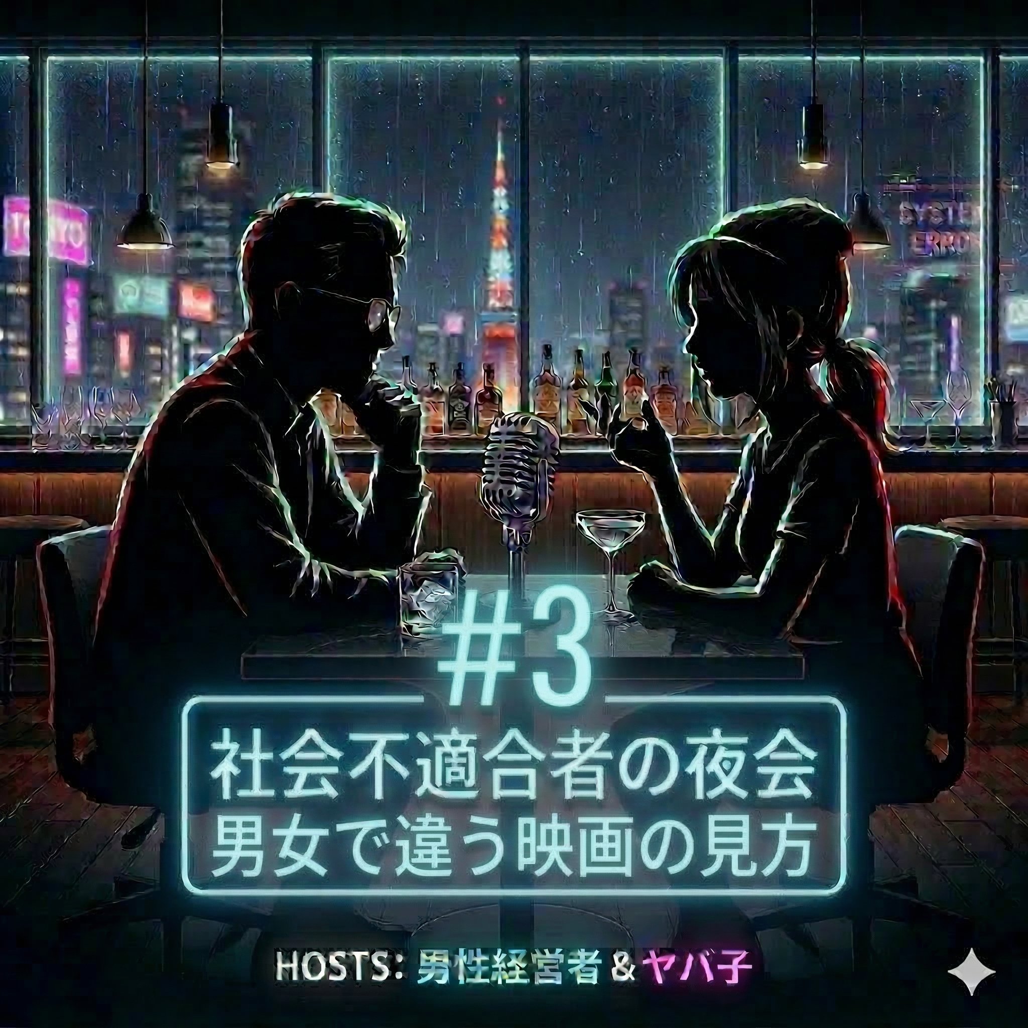 「普通」というOSがインストールされていない者たちへ捧ぐ。 都会の深夜、ネオンの下。 49歳の経営者と、社会にうまく馴染めない元部下「ヤバ子」が、日常に潜む「社会のバグ(不自然な常識)」を肴に語り明かします。 女性コミュニティの同調圧力から、仕事の謎ルール、家族のあり方まで。 「社会に馴染めないのは、あなたが悪いのではなく、社会の仕様が古いだけかもしれない。」 息苦しい「正解」からログアウトして、少しだけ自分を取り戻す30分。