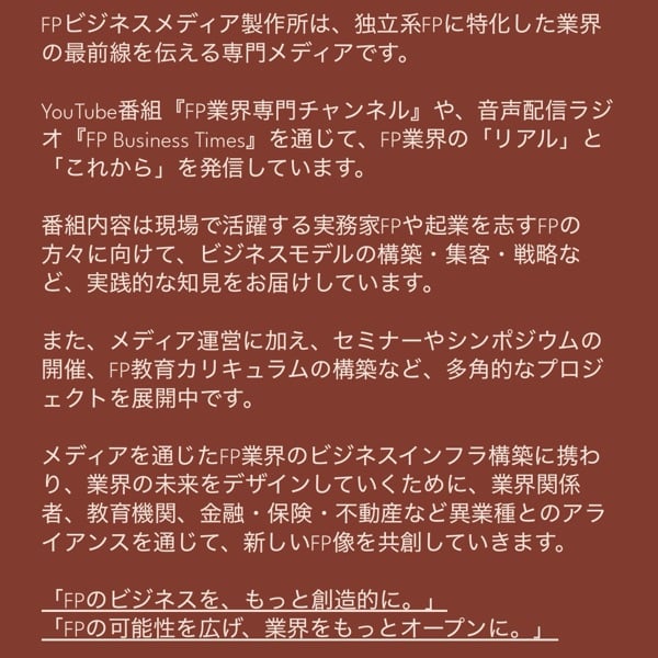 FPビジネスメディア制作所の町田貴規がFP業界に関する内容を発信する情報共有番組です。