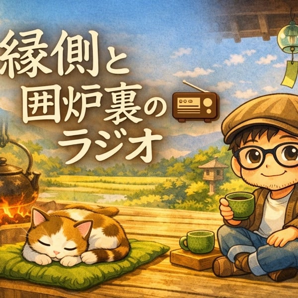 縁側と囲炉裏ラジオ 朝は「縁側の朝ラジオ」 ときどき午後には「縁側のひととき」 夜は「囲炉裏の夜ラジオ」 すずめの声が聞こえる朝や 囲炉裏の火を囲む夜のような 少しゆっくりした時間を お届けしています。 はじめての方も いつもの方も ここではみんな 「縁側の住人さん」 ふらっと縁側に座るような気持ちで 聞きに来てもらえたら嬉しいです。 縁側のまさにぃ。