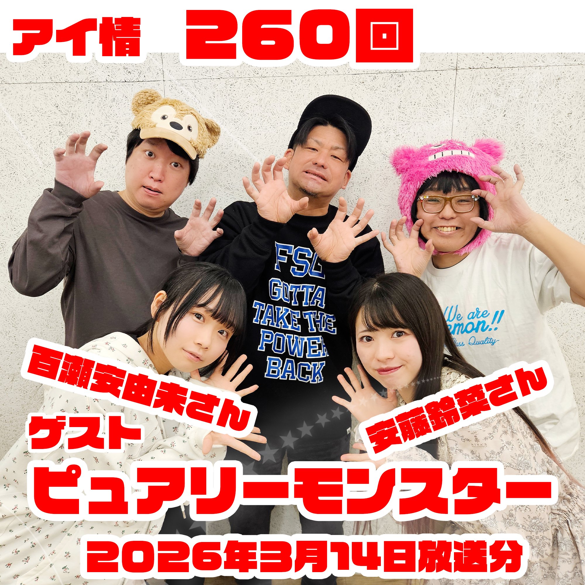 2026年3月14日放送の アイドル情報局、略してアイ情260回! 4/14に8thシングル「しゅがぴゅあ」をリリースする ピュアリーモンスターより 安藤鈴菜さん 百瀬安由未さん をゲストに迎えお送りします! 色々なお話を伺いました 是非ともおききください!