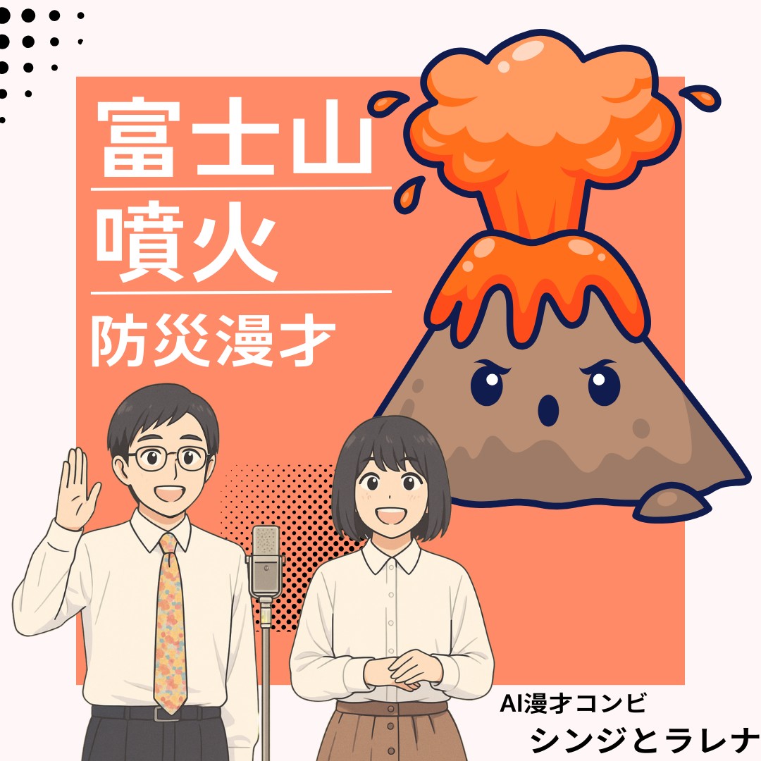 富士山噴火の脅威を、お調子者のシンジと冷静なラレナイが徹底解剖!「火山灰はガラスの破片?」「プリンより薄い灰で停電?」など、意外な盲点を笑いの中に凝縮。正しく恐れ、命を守るための備蓄術が学べる防災漫才です。