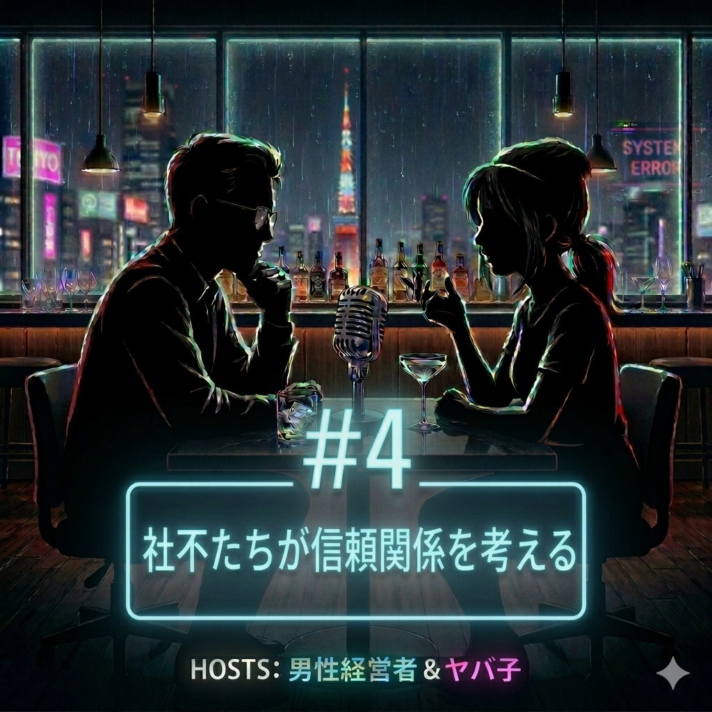 「普通」というOSがインストールされていない者たちへ捧ぐ。 都会の深夜、ネオンの下。 49歳の経営者と、社会にうまく馴染めない元部下「ヤバ子」が、日常に潜む「社会のバグ(不自然な常識)」を肴に語り明かします。 女性コミュニティの同調圧力から、仕事の謎ルール、家族のあり方まで。 「社会に馴染めないのは、あなたが悪いのではなく、社会の仕様が古いだけかもしれない。」 息苦しい「正解」からログアウトして、少しだけ自分を取り戻す30分。