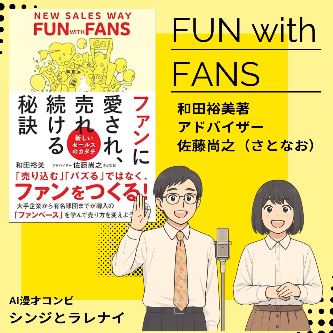 営業の神様・和田裕美とファンベースの旗手・さとなおの共著をAIが漫才化!空回り気味のシンジと冷静なラレナイが、現代の「網業(もうぎょう)時代」を生き抜く農耕型営業や、誠実さが生む収益性を爆笑の掛け合いで解き明かします。