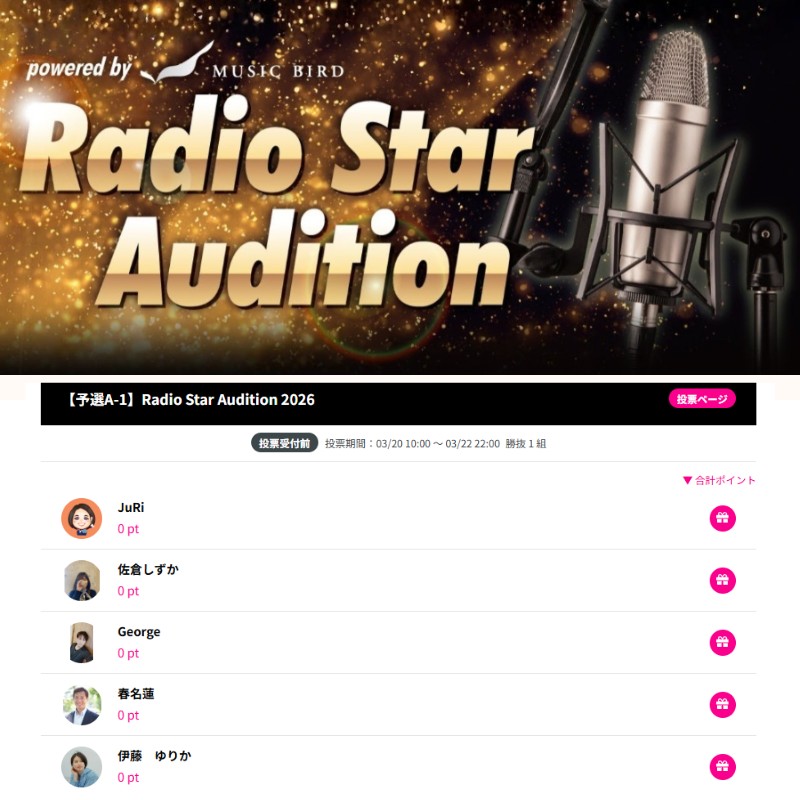 【Radio Star Audition】 🔳Radio Star Audition 2026にエントリーしました! 応援よろしくお願いいたします! 予選は【A-1】グループでのご参加となります。 今回は予選、 セミファイナル、ファイナルと3回戦での開催となります。 ▼予選投票期間 3月20日(金) ~ 3/22(日)22:00 ▼投票ページ https://mudia.tv/event/4977 会員登録の方法について 投票に参加するには『Mudia』への会員登録が必要です。会員登録は以下の動画をご確認ください。 https://www.youtube.com/watch?v=N1B1JWWKPss ▼レポートページ(100文字以上で300pt) https://mudia.tv/reports/themes/6853 ----------------------------------------------------------- \大切なお知らせ2つ/ ~諸事情により欠番があります~ ◆3/1~マンスリースポンサー様 cafe de KAORI オーナー 剱持英子さん 【イベント告知】 ジャン シャオチン 古箏(こそう)の美しい音色 4月19日(日) 10時会場 10時半開演 参加費4000円 ケーキコーヒー付 場所:JR 京成線 松戸駅 東口1分 イセウビル地下1階 cafe de KAORI 問い合わせ 090-6142-8482剱持さんへ ________ ◆デイリースポンサー様(3/19~20) ターナ貴生さん 第10回サムライ講演会 https://ameblo.jp/kirakirajosei-0920/entry-12952016753.html _______ 🔶『個人スポンサー様』募集中『壁打ち権』販売中 https://sumairuj.stores.jp/ ________ ♦️Youtubesチャンネル♦️ JuRi | アラフィフ人生の羅針盤 https://www.youtube.com/@Design_Keu_JuRi _______ 🌈JuRist (じゅりすと)🌈 会員No . 0. Izumiさん 1. ゆふこれたかさん 2. 珠美さん 3. テニバカさん 4. ラル バハドゥール やまもとさん 5. 高橋 アキさん 6. ともちんさん 7. 藤井 布美子さん 8. yukkyさん 9. ほめほめドッグトレーナー 由香さん 10. インタビュアー 宇波 育代 元局アナウンサーさん 11. hinotake さん 12. アラカン@まさみんさん 13. マインドTUさん 14. echigoya さん 15. 中嶋 美由紀さん 16. たかやま ちえさん 17. 福田 日出男さん 18. ひろぴょんさん 19. mami さん 21. 貴生さん 22. みえっちさん 23. 綾乃ちゃん 24. Cottyさん 25. だいさん 26. ballad さん 27. REIKOさん。 28.Yumirin♫(yumirin♫)さん 29.さかいや みちさん 30.西村 和美さん 33.Kaori さん 37. もにさん 42.まさみさん 55. やまもと みちこさん 73.Mamiさん 75.Michelleさん 77.おうみんさん 83.ピース青山ゆみ さん 88.カミジマアイさん 99.めぐみ 100.えみりんさん 110.小林 恵美子さん 555.Dr.ロバーツkazuo さん 777.松浦 和子さん 1597.そんじんさん 7777.がたろさん 8888. 株式会社新規開拓 代表取締役 朝倉千重子先生 _______ ◆プロフィール◆ ✔️兵庫県宝塚市在住 ✔️サラリーマン29年目 ✔️個人事業主5年目 ✔️49歳高1小6兄弟の母 ✔️次男は発達障害グレーゾーン ✔️元バックパッカー女子 ✔️異文化コミュニケーションが大好き ✔️ハウスキーピング協会 整理収納アドバイザー ✔️日本デコずし協会 マイスター認定講師 ✔️オンライン版TSL 第7・9期卒業生 ◆各種SNS◆ ✔️公式LINE  https://lin.ee/BjwY0gU ✔️リンクリット(料理教室) https://lit.link/jellybeanskitchen ✔️リンクリット(片付け) https://lit.link/sumairuj #サラリーマン #パラレルワーカー #夢 #小学生ママ #小学生 #教育 #子育て #働く女性 #働くママ #起業 #母 #健康 #美容 #音声配信 #毎日継続 #恩師 #メンター #遺品整理 #療育 #サッカー #ダイエット #運動 #体力づくり #メンタル #痩せる#失敗 #対応 #片付け #整理 #自分と対話 #向き合う #通信制高校 #高校 #いじめ #天才 #息子 #子育て #ストレス #ストレス発散 #就職 #経験 #学び #転職 #アラフィフ #毎日配信 #継続 #4周年 #コレステロール #家族性高脂血症 #運動 #習慣化 #スロージョギング #思春期 #筋トレ #読書 #ラジオ
