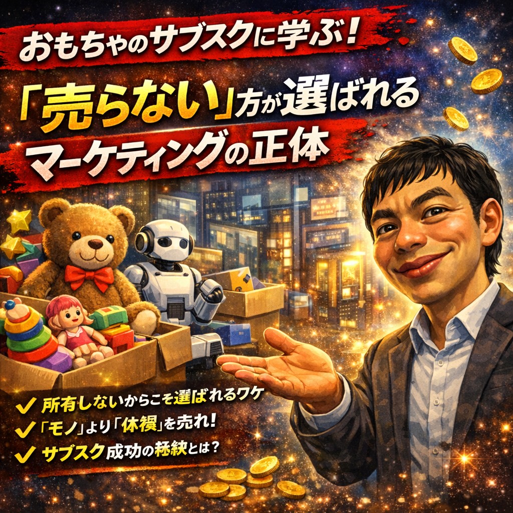 今回は、我が家で利用している「おもちゃのサブスク」や、近年の消費トレンドである「所有から利用へ」という変化をヒントに、これからの時代に選ばれ続けるビジネスの「新・常識」をお話しします。