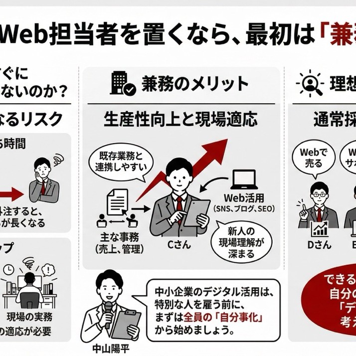 "端的に、中小企業のWeb担当はこう 探し、育てて行くのがよいです"