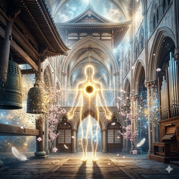サウンド面では、東洋の「和鐘・南無大師」と西洋の「パイプオルガン・ハレルヤ」がひとつの潮のように溶け合います。