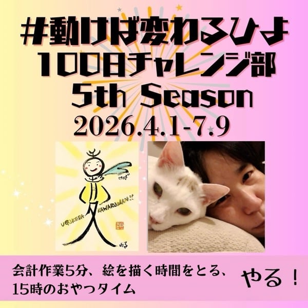 2026.4.3(金)100チャレ報告  3日目🐱です ①絵を描く時間をとる →描けず😭次回のイベント告知用画像を作って終わりました ②会計作業5分 →預金の入出金予定表、入力&レシート貼付 ③15時のおやつタイム →お昼ご飯兼用で、生めろんくろわっさん🥐😋 BGM:オリジナル曲 『春いぶき』 https://stand.fm/episodes/699c5ed86c0842f035babcb9 #動けば変わるひよ5期
