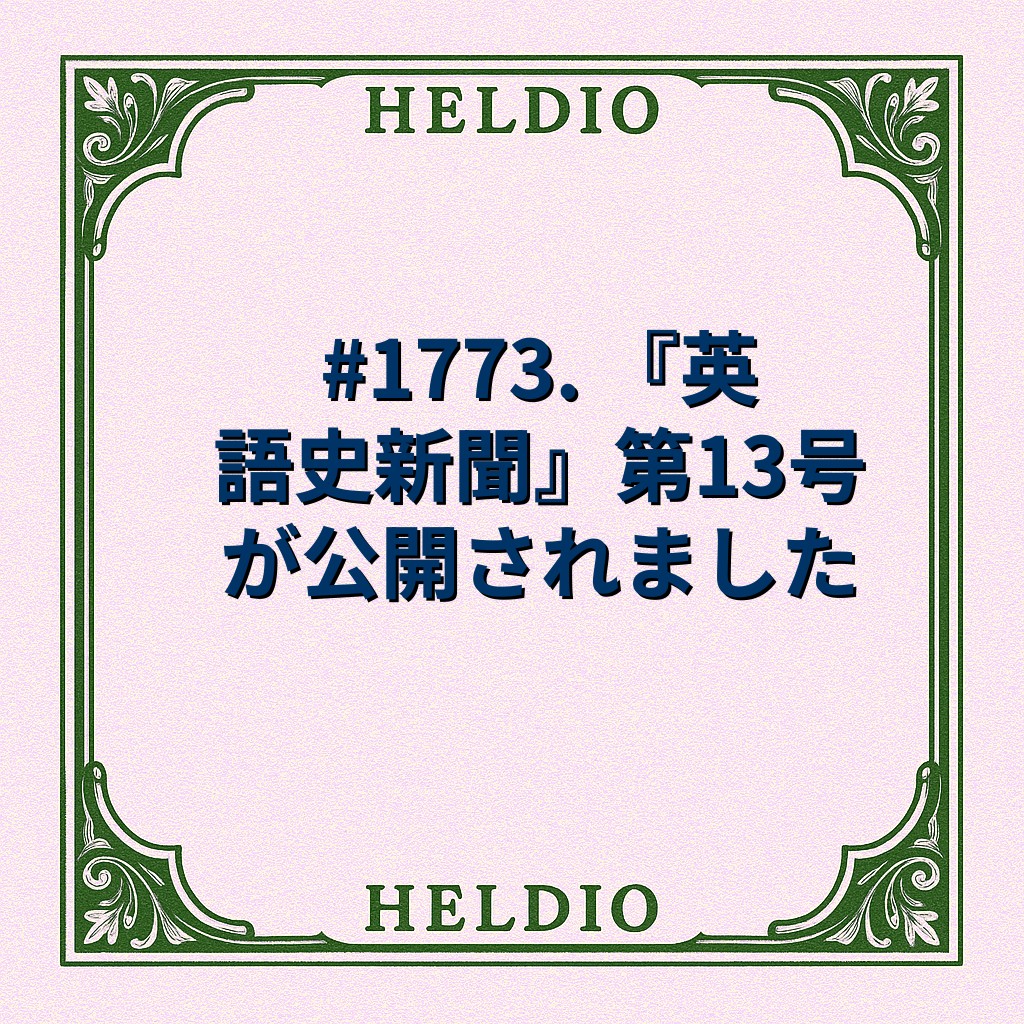 - heldio, helwa はもちろん hellog や YouTube 「いのほた言語学チャンネル」などの様々な媒体での英語史コンテンツの新着が日々集まってくるページです.毎日複数回更新されています.