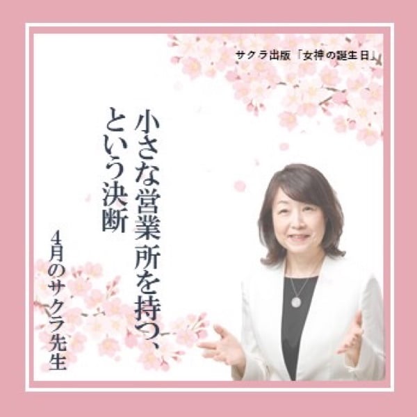 小さな営業所を持つ、という決断(2026.4.7配信) 神保町の書店に持っている、小さな棚。 最初は、交流の場としての役割でした。 けれども、少しずつその意味が変わってきています。 今回の配信では、「場所」に投資するという決断と、 そこから生まれている変化についてお話ししています。 ▶ 続きは音声配信でお聴きください。 ★【書店棚のご案内】 神保町の書店にて、 月額1000円(1ヶ月2冊まで)でお預かりしています。 1冊売れた場合は、翌月は無料とさせていただきます。 また、3ヶ月でご利用の方は、その分期間を延長いたします。 本の“居場所”としてご活用いただけたら嬉しいです。 ご希望の方はお気軽にご連絡ください。 ★5月21日(木)10時~12時 「女神の講演会」講師・河村都さん 大井町:きゅりあん4階 お申し込みはこちら https://buy.stripe.com/eVq3cu4Yp5e620m56hdIA1k #女性起業家 #場所の力 #ビジネスの考え方 #サクラ出版 #女神の誕生日