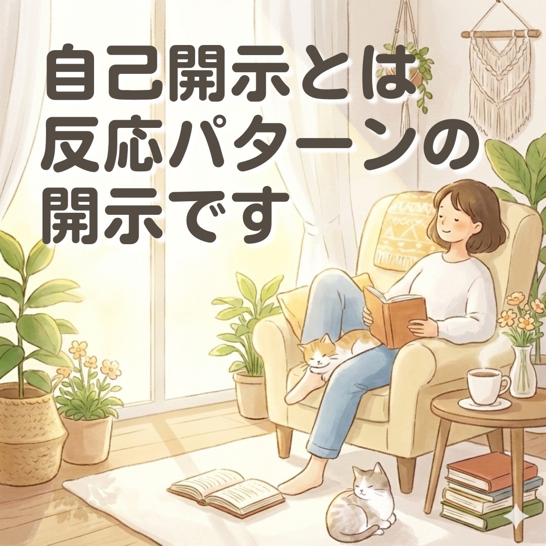 自己開示って、「自己反応パターンの開示」のことだったんですね✨️腑に落ちました!分かりやすいご説明ありがとうございます😊 そうなると、反応は勝手に起こるから、反応パターンを認識して、コメント(開示)するだけの超簡単なことですね💡