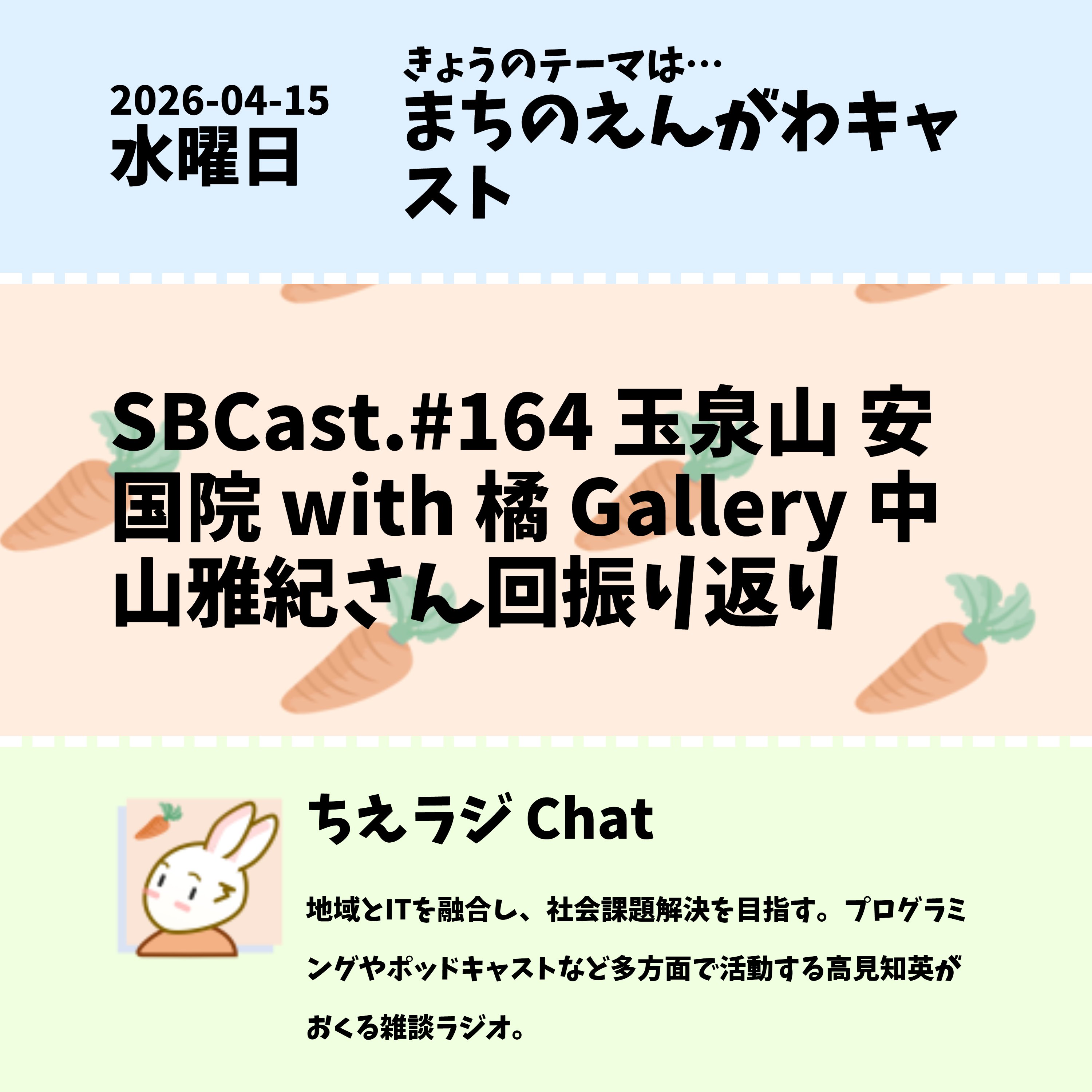先日配信したSBCast.#164 玉泉山 安国院 with 橘 Galleryの中山雅紀さんにお越し頂いた回の振り返りをしました #ポッドキャスト #声日記 #ちえラジえんがわキャスト - SBCast.#164 アートと教養のお寺(玉泉山 安国院 with 橘 Gallery 中山雅紀さん) - SBCast. - LISTEN