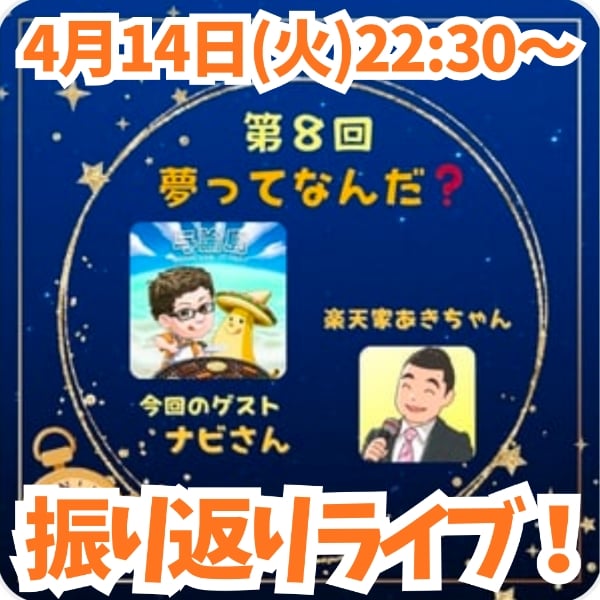 振り返りLIVEは4月14日22時30分~🎤 楽天家あきちゃんのチャンネルにて⇨ https://stand.fm/channels/60e596ed04bb1691c1a481cc