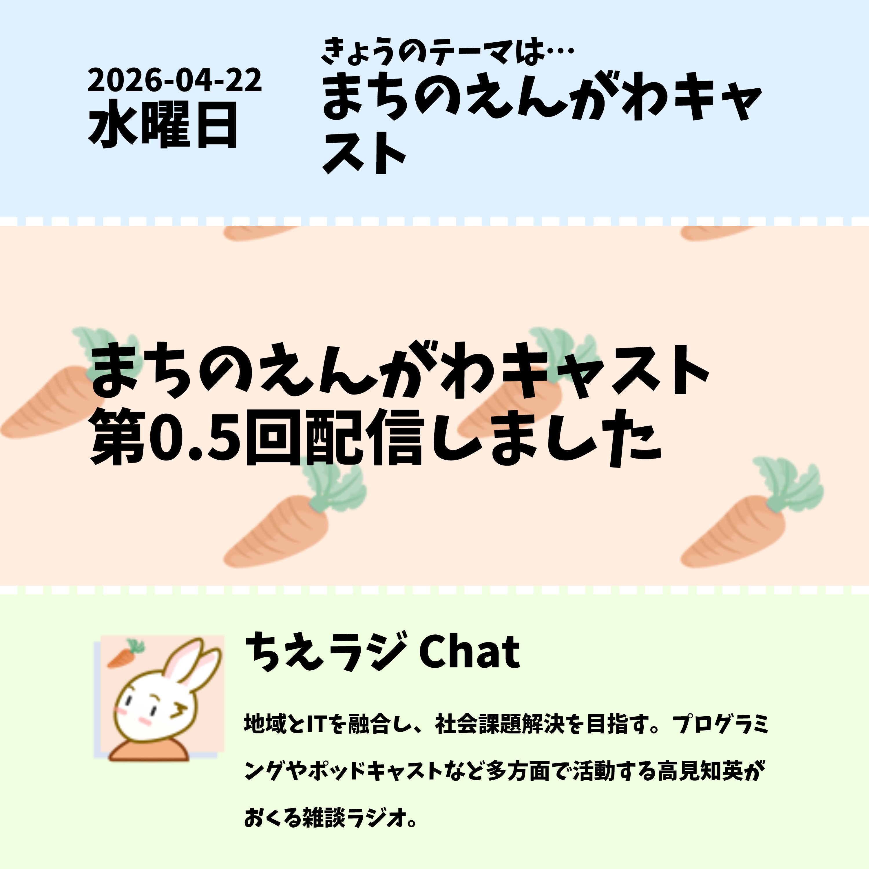 まちのえんがわキャスト第0.5回配信を行ないましたので、こちらの振り返りをしました #ポッドキャスト #声日記 #ちえラジえんがわキャスト