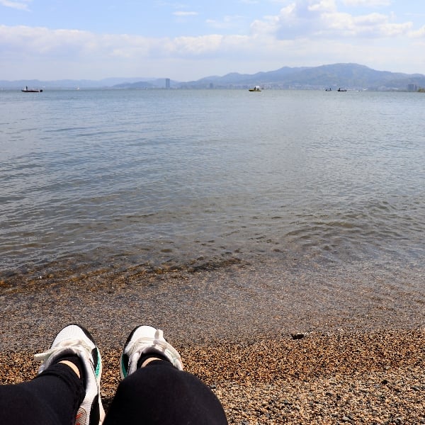 琵琶湖と 子ねこ達と あおはるお兄さん