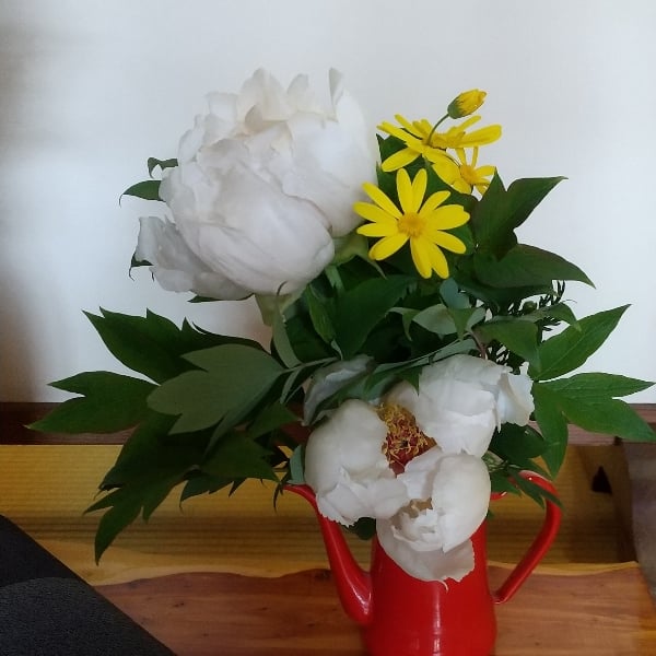 白いボタンの花260421