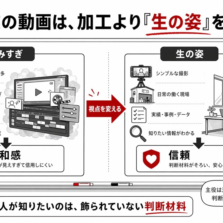 "中小企業のWeb動画活用は、加工より「生の姿」を見せよう 中小企業の動画は、きれいに作り込むほど信頼されるとは限りません。見る人が知りたいのは、飾られていない判断材料。動画を作る前に押さえたい視点を短く整理します。 YouTubeショート #Webマーケティング #中小企業 #企業動画 #動画活用 #Web集客 #信頼づくり #ラウンドナップ ■運営・進行 株式会社ラウンドナップ(ラウンドナップWebコンサルティング) 代表取締役・コンサルタント 中山陽平 中小・小規模事業者専門のWebマーケティング、Web活用のご相談は"