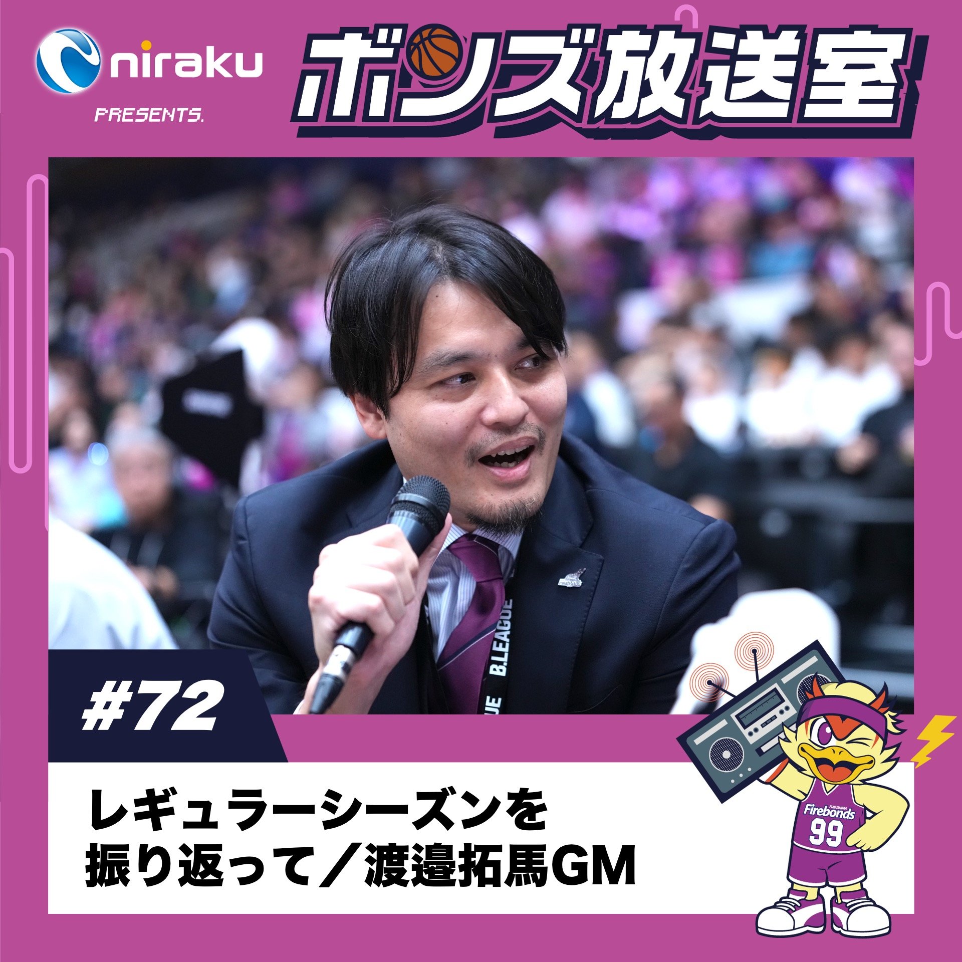 ◤ ニラクPRESENTS. #ボンズ放送室 ◢ 📻#72 レギュラーシーズンを振り返って 👤#渡邉拓馬 ゼネラルマネージャー ゼロからスタートさせた中でプレーオフ進出、ホーム開催を決めた今シーズンを渡邉GMと振り返ります🏀 プレーオフへの意気込みと合わせて、ぜひご視聴ください🔥‼️ #福島ファイヤーボンズ #firebonds #Bリーグ #バスケットボール